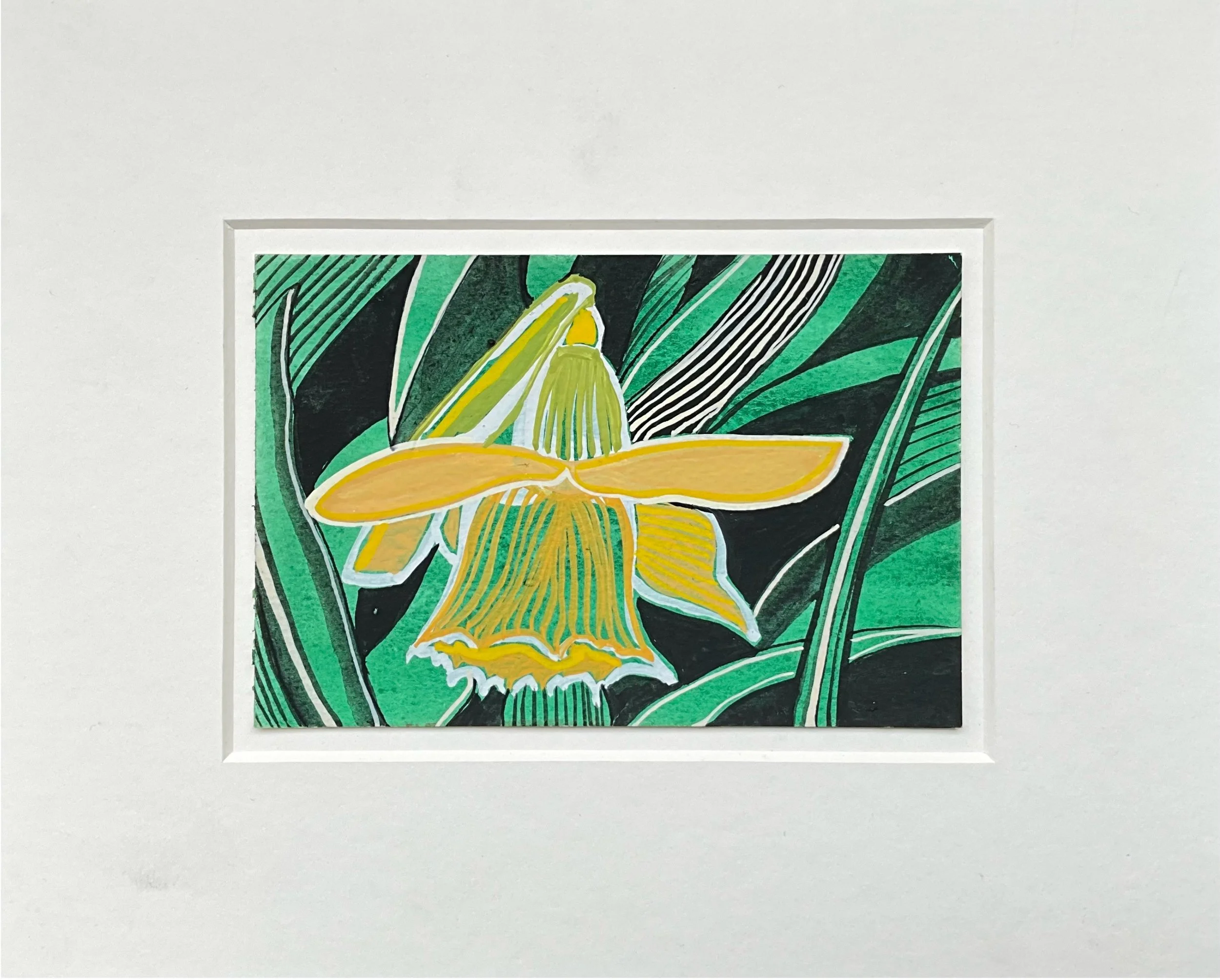 Ref. 07. Chloe Fremantle, Daffodil, 2012, gouache on paper, mounted. 21 x 26cm with mount board, work, 10 x 15cm. Buy Now price £125