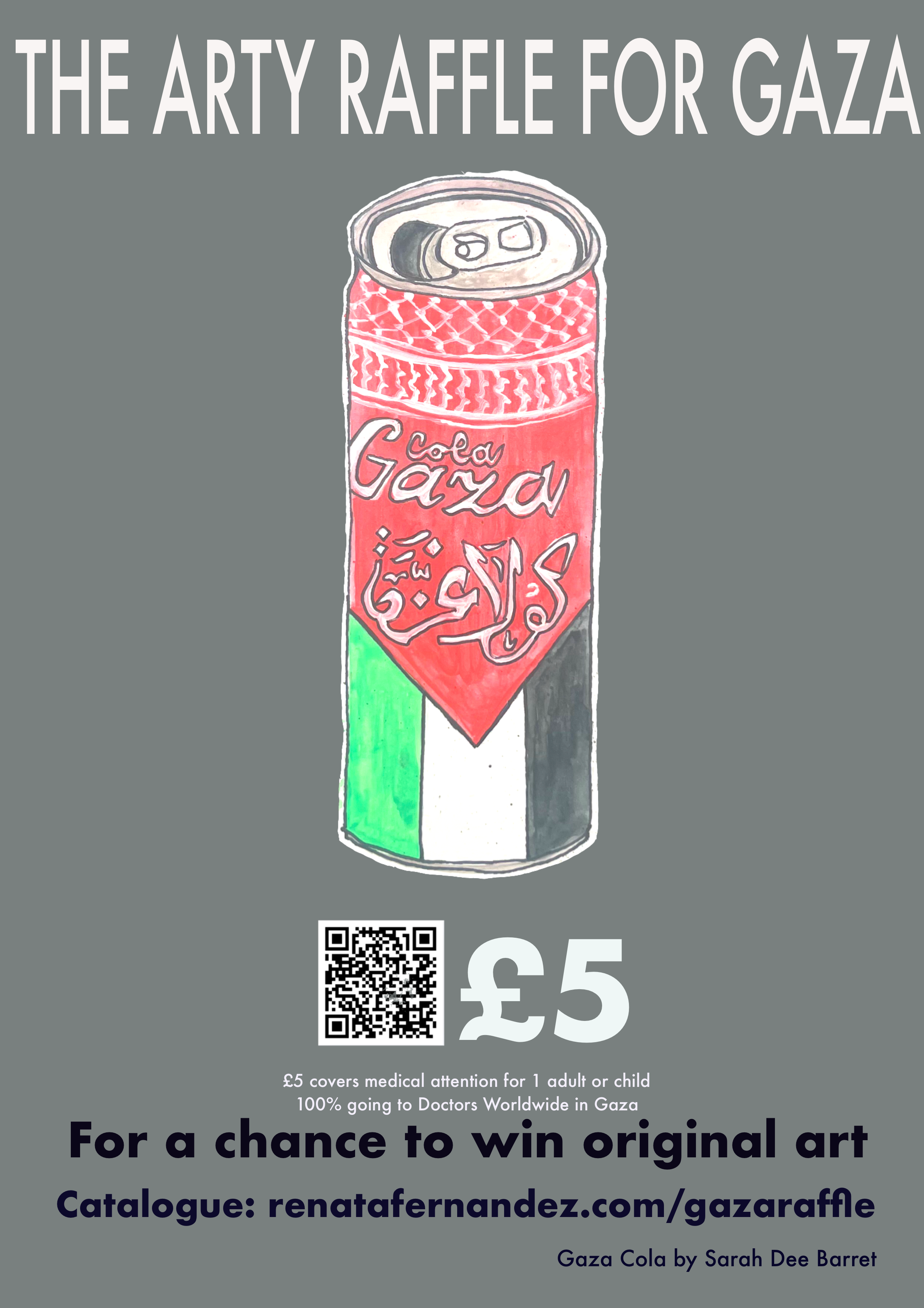 IMPORTANT NOTE FOR ARTISTS WANTING TO DONATE: Donations are now close for this event. Yet we are seeking to establish a protocol of Arty Raffles for Gaza to be used again, so stay in tune for future events like this, your donations will always be well received.
