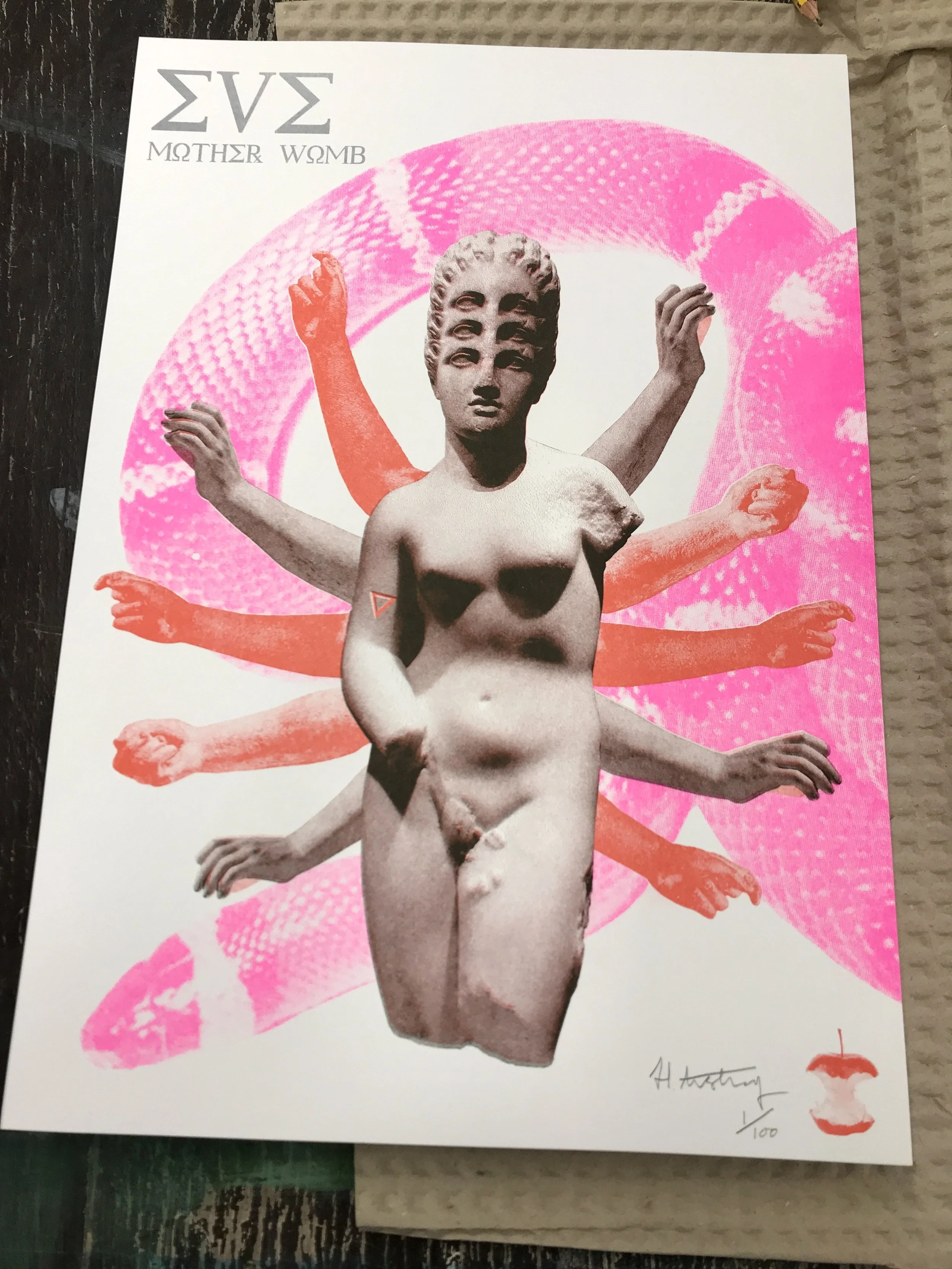 Ref.39. Henrietta Armstrong, EVE (Mother womb), 2022, 4 colour Risograph print, 28.5cm x 41cm. Buy Now price £125